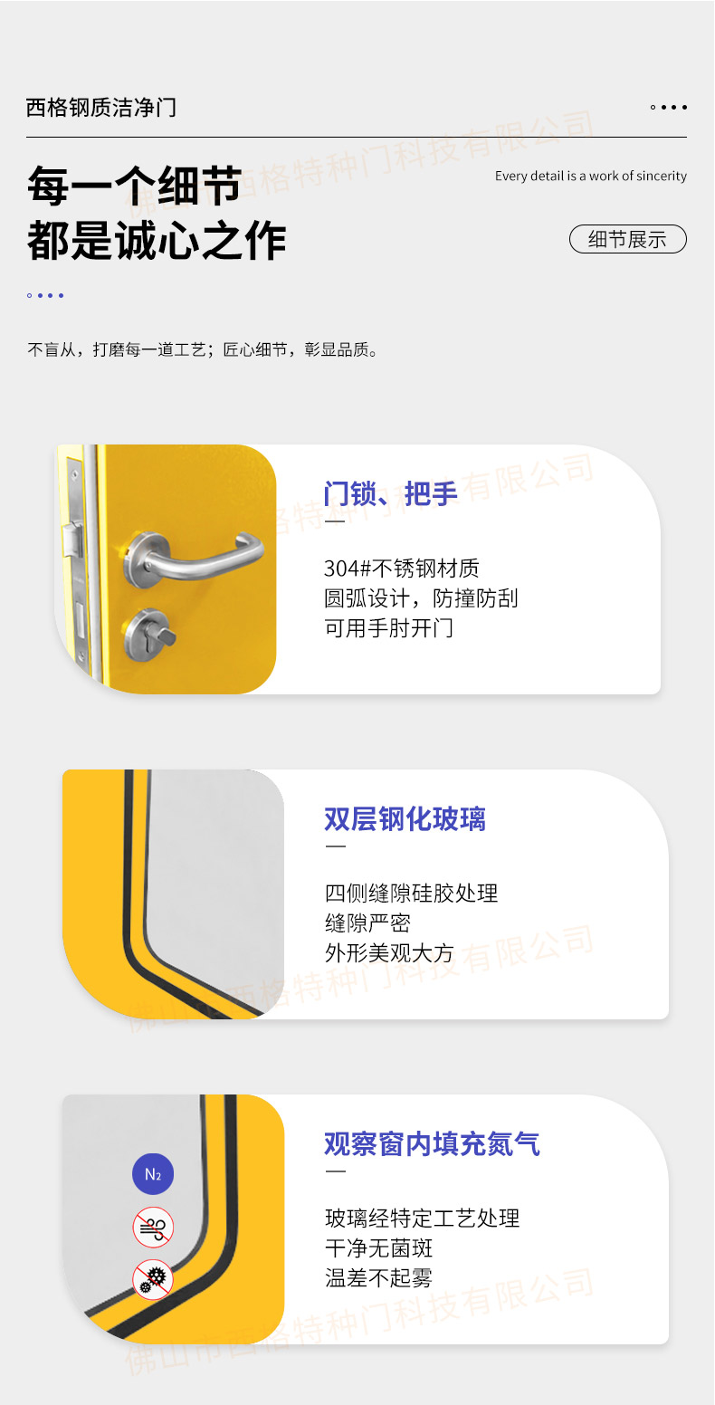 產品簡介:廣東西格,大型凈化門生產廠家,專用生產各類型凈化門,款式,視窗,材質厚度,均可定制。