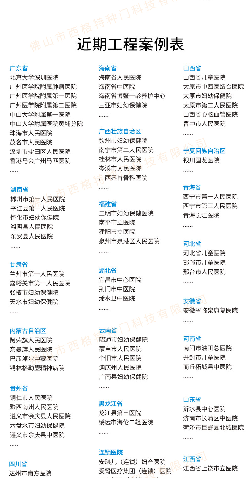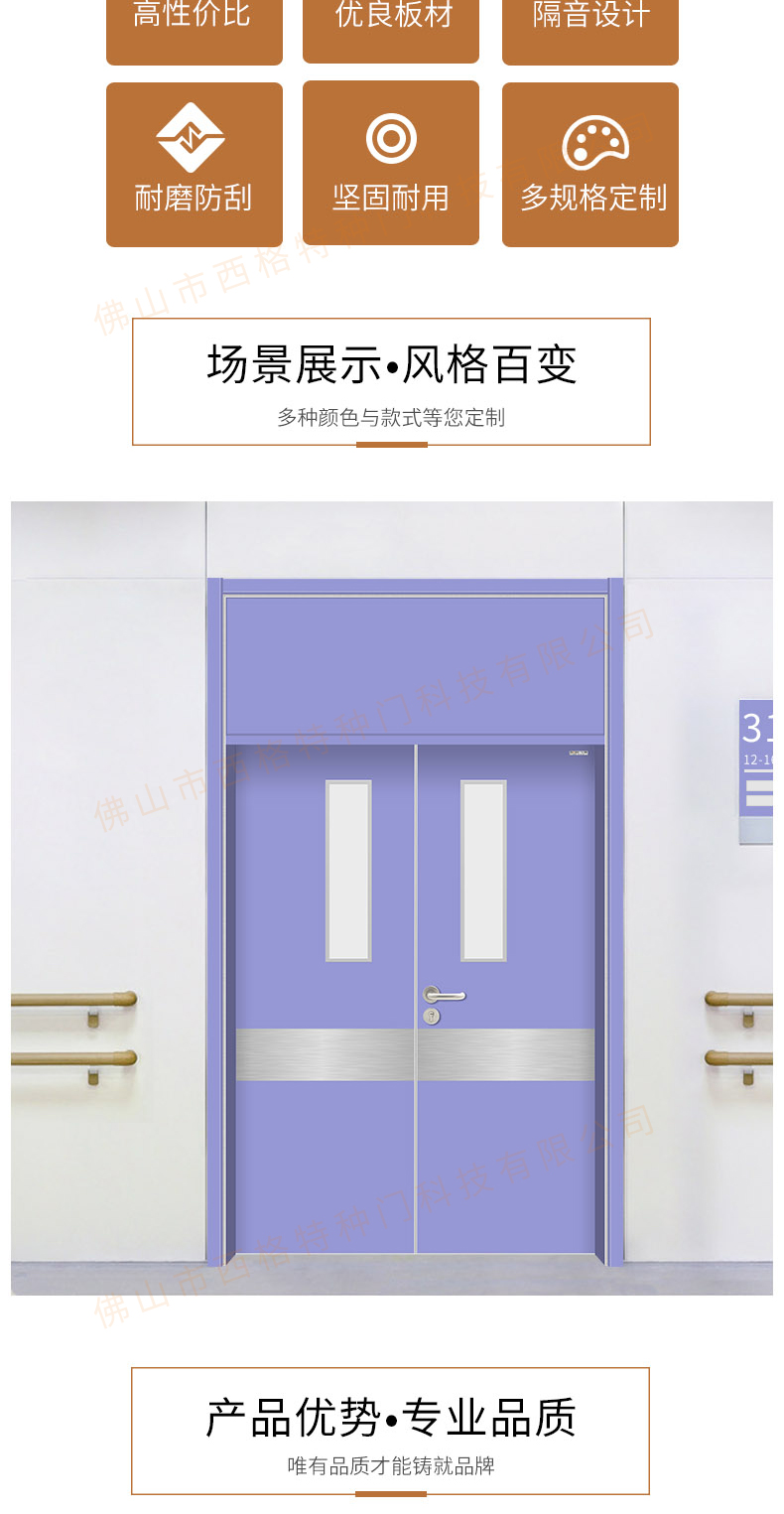 產品簡介:chnsige西格特種門,專業生產醫院門,醫院診室門,醫院辦公室門,醫院衛生間門,木質醫院門,鋼質醫院門,多鐘款式、顏色,尺寸可定制。