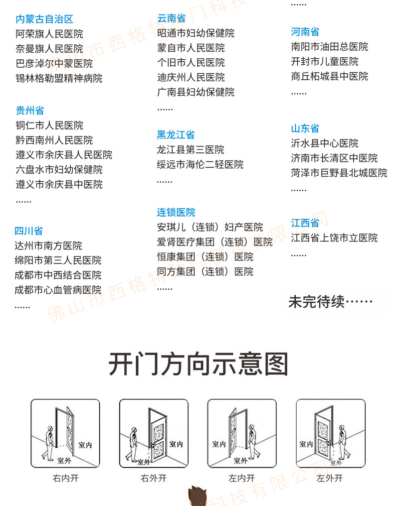 產品簡介:chnsige西格特種門,專業生產醫院門,醫院診室門,醫院辦公室門,醫院衛生間門,木質醫院門,鋼質醫院門,多鐘款式、顏色,尺寸可定制。